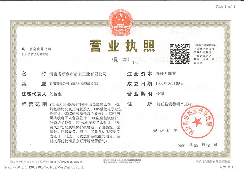 河南省新鄉市啟東工業有限公司始建于1987年,是專注研發、生產自動化儀器儀表(主要與壓力容器、鍋爐等容器配套使用)的廠家。主要產品有液位計(磁敏雙色型、磁翻柱型等)系列、烤包器熄火聯控裝置系列、壓力容器快開門安全聯鎖保護裝置系列、鍋爐報警器系列。二十多年來,公司產品暢銷國內并遠銷俄羅斯、蒙古與東南亞,深得廣大用戶的信賴和好評。我們多年來致力于自動化儀器儀表的研制生產,公司現具有完善的生產、試驗、檢測手段和設備。科技創新、誠信服務,是我們不變的經營理念,我們將以強有力的技術支持及售后竭誠為客戶提供良好的服務?! ?012年我公司成功研發了KCL系列烤包器熄火聯控裝置,并于2013年2月2日榮獲中華人民共和國國家知識產權局辦法的《實用新型**證書》<**號:2021202257735>該產品廣泛應用于唐鋼等大型鋼鐵企業,為烤包器安全作業提供了有力的保障?! ?002年我公司成功研發磁敏電子雙色液位計獨特的高亮度LED紅綠雙色顯示,獲得了專家的首肯和用戶的一致好評。在此基礎上我公司研發人員十年磨一劍,致力于XQFB-1防爆型磁敏雙色液位計的研發,于2013年12月27日由國家防爆電器產品質量監督檢驗中心檢驗合格并頒發防爆合格證書<編號:cnex19.0883>。該產品性能得到了充分的發揮,廣泛應用于含有Ⅱ類A·B級T1-T4組可燃氣體或蒸汽與空氣混合形成的爆炸性混合物的0區、1區危險場所。連接用戶DCS或PLC系統實現遠距離集中顯示和控制,從而實現節能、數字化管理。為用戶增加了一定的經濟效益和社會效益,。2014年公司成功申請了夢潤儀表的logo,新的品牌新的形象,夢潤儀表是啟東的LOGO, 歡迎新老用戶前來洽談合作。  我們一如既往地注重科研的投入,憑借產品的不斷更新、加大科技含量,進一步拓展市場。我們相信品質成就未來,以過硬質量、優惠價格、完善的售后服務熱忱歡迎廣大客戶來我司視察指導、洽談業務;精誠合作,共創輝煌!